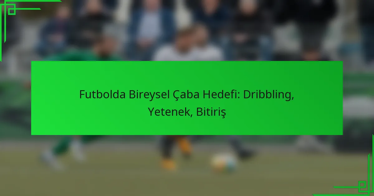 Futbolda bireysel çaba gollerini etkili bir şekilde pratiğe dökmek için, dripling, bitirme ve genel beceri gelişimini artıran alıştırmalara odaklanın. Bireysel ve partner alıştırmalarının karışımını dahil etmek, çevikliğinizi, şut doğruluğunuzu ve baskı altında icra etme yeteneğinizi önemli ölçüde artırabilir.